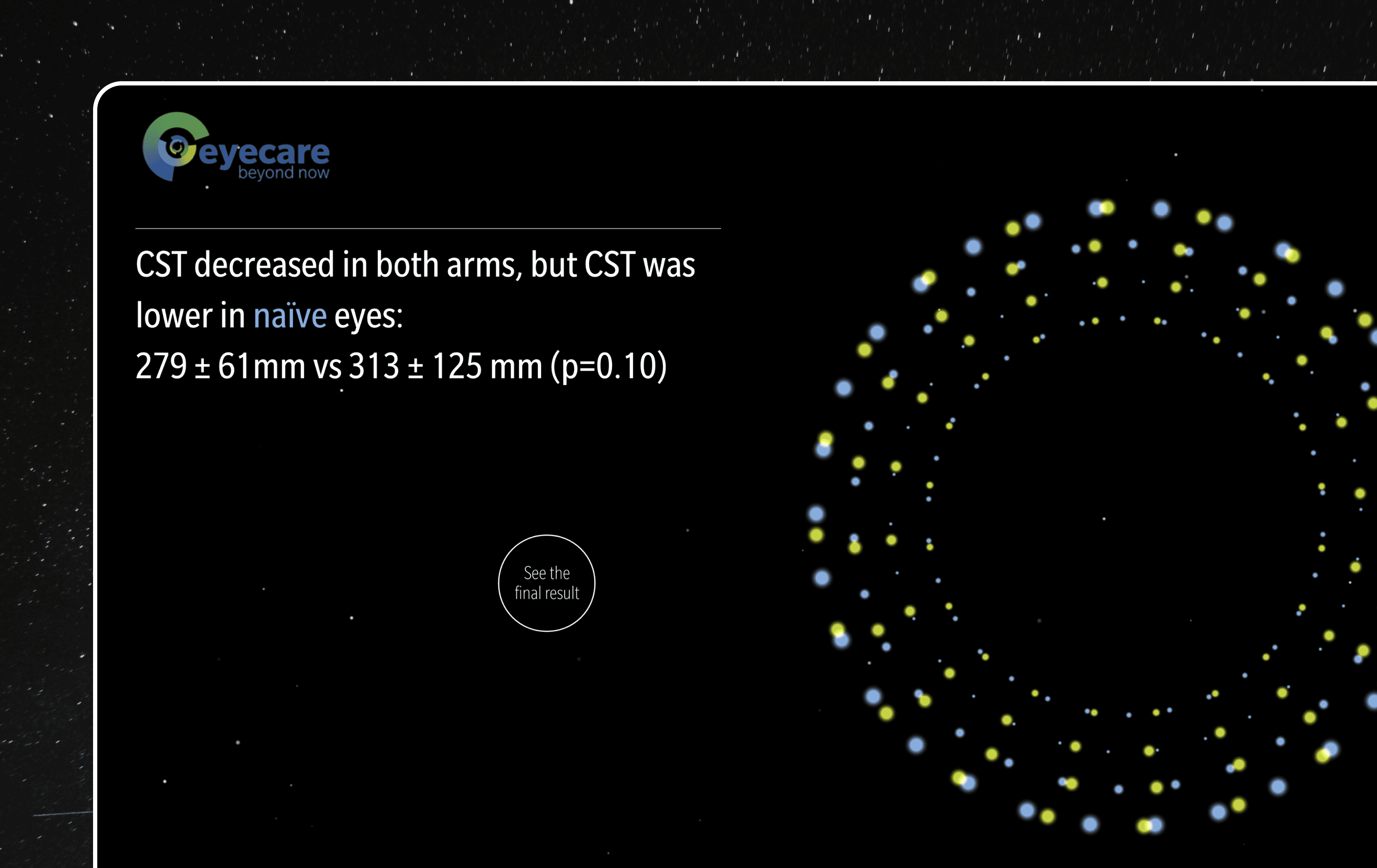 Initially briefed to create an animation for health professionals and pharmacy sales teams showing data around a medical study, it became apparent that an animation – although aesthetically pleasing would not be the best tool.